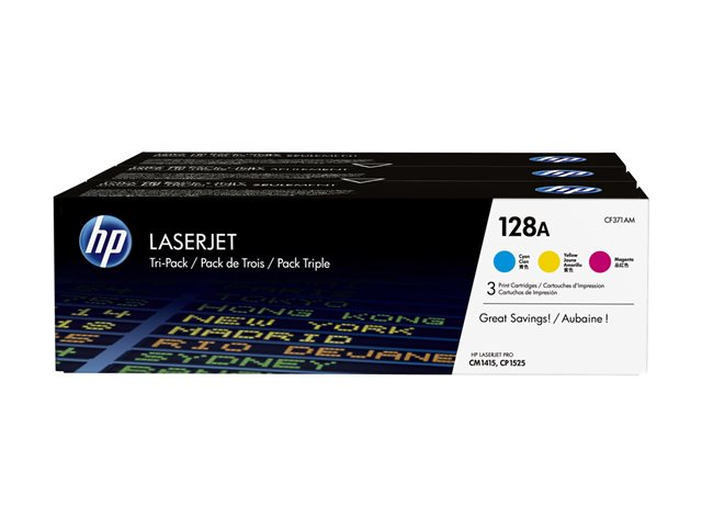 HP 128A - 3-pack - gul, cyan, magenta - original - LaserJet - tonerkassett (CF371AM) - för Color LaserJet Pro CP1525n, CP1525nw; LaserJet Pro CM1415fn, CM1415fnw