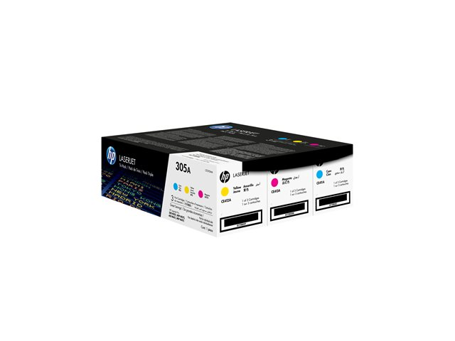 HP 305A - 3-pack - gul, cyan, magenta - original - LaserJet - tonerkassett (CF370AM) - för LaserJet Pro 300 M351, 400 M451, MFP M375, MFP M475