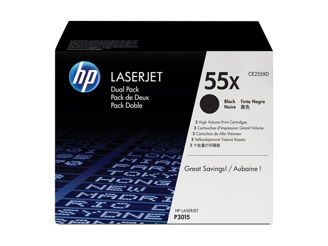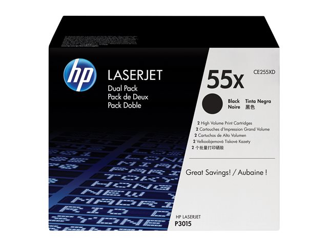 HP 55X - 2-pack - Lång livslängd - svart - original - LaserJet - tonerkassett (CE255XD) - för LaserJet Enterprise MFP M525; LaserJet Enterprise Flow MFP M525; LaserJet Managed MFP M525