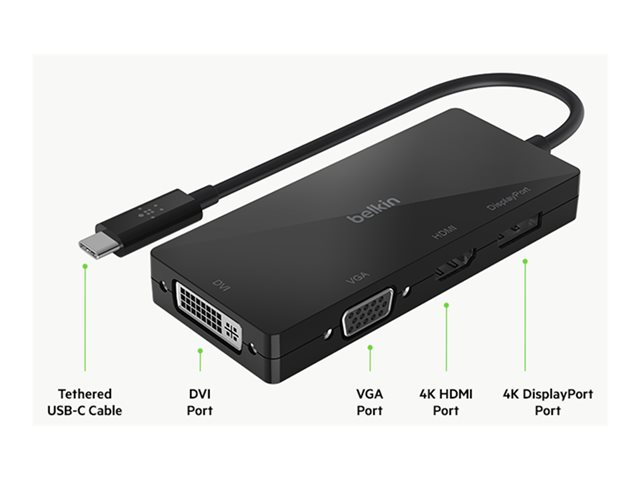 Belkin - Videoadapter - 24 pin USB-C hane till HD-15 (VGA), DVI-I, HDMI, DisplayPort hona - svart - stöd för 4K