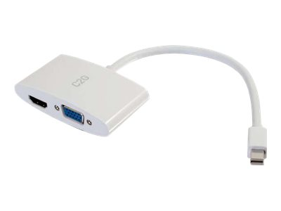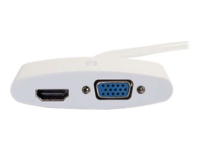 C2G 20cm Mini DisplayPort to HDMI or VGA Adapter Converter 4K UHD - White - Videokort - Mini DisplayPort hane till 15 pin D-Sub (DB-15), HDMI hona - 20.3 cm - skärmad - vit - stöd för 4K