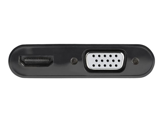 Denna DisplayPort till HDMI VGA-adapter erbjuder en portabel lösning för anslutning av din DP-utrustade bärbara dator till en VGA- eller HDMI-skärm. Adaptern har stöd för High Dynamic Range (HDR) och ger skarpare bilder med förbättrad video. Två-i-ett-videoanslutning - perfekt för resor Slipp besväret med att bära på olika adaptrar med hjälp av denna 2-i-1 DisplayPort-skärmadapter. Tack vare både VGA- och HDMI-utgångar kan du bekvämt ansluta din bärbara dator till alla HDMI- eller VGA-utrustade skärmar med hjälp av denna multiport video-konverterare. Den kompakta och lätta designen gör att reseadaptern enkelt får plats i din datorväska, vilket gör den perfekt för yrkesverksamma som ofta är på resa. Enastående 4K-bildkvalitet HDMI-utgången på denna DisplayPort video-adapter gör att du kan utnyttja videofunktionerna som är inbyggda i din dators DP-anslutning, vilket levererar fantastisk UHD-kvalitet till din 4K 60 Hz HDMI-skärm. Dessutom har VGA-utgången stöd för HD-upplösningar på upp till 1920 x 1080, vilket garanterar att du inte behöver kompromissa med bildkvaliteten när du ansluter till en VGA-skärm eller projektor. Med HDR-stöd får du levande bilder med ökad kontrast, ljusstyrka och färger och större ljusstyrka än vanlig digital bildbehandling. Problemfri installation Ingen ytterligare programvara eller drivrutiner måste installeras, så denna dongel för DP (hane) till HDMI (hona) och VGA (hona) erbjuder en plug-and-play-lösning för användarvänliga upplevelser. Med den kan du gå in i vilket styrelserum som helst och vara redo att göra en presentation, vilket ger ett gott första intryck. DP2VGAHD20 täcks av StarTech.coms 3-årsgaranti och gratis livstidsgaranti på teknisk support.