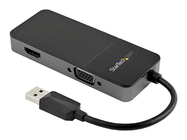 Denna USB 3.0 till HDMI VGA-adapter erbjuder en bärbar lösning för anslutning av en HDMI- och VGA-skärm till din USB-A-kompatibla bärbara dator eller stationära dator. Multiportvideoadaptern gör att du kan spegla eller utöka innehåll på ytterligare två skärmar samtidigt (1 x HDMI och 1 x VGA), och skapa en arbetsstation med dubbla skärmar. Förbättra din produktivitet Multiskärmsadaptern fungerar som ett externt grafikkort, som gör det enkelt att ansluta flera skärmar till en USB 3.0-kompatibel stationär eller bärbar dator. Adaptern utnyttjar USB 3.0-gränssnittet och levererar högupplöst innehåll till dina HDMI- och VGA-skärmar. Adaptern kan användas för att spegla din primära stationära dator, eller för att utöka skrivbordet, dubblera arbetsutrymmet och öka produktiviteten. Två-i-ett-videoanslutning - perfekt för resor Slipp besväret med att bära runt på olika adaptrar. Denna USB 3.0-videokonverterare tillhandahåller både HDMI- och VGA-utgångar, du kan enkelt ansluta din bärbara dator till vilken HDMI- och VGA-utrustad skärm eller projektor som helst med hjälp av denna multiportadapter. Den lätta dongeln är också liten, vilket gör den till det perfekta tillbehöret för yrkesverksamma på resor. Enastående 4K-bildkvalitet HDMI-utgången på denna USB 3.0-videoadapter har stöd för UHD-upplösningar upp till 4K 30 Hz, medan VGA-utgången har stöd för HD-upplösningar på upp till 1920 x 1080, vilket garanterar att du inte behöver kompromissa med bildkvaliteten. USB32HDVGA täcks av StarTech.coms 3-årsgaranti och gratis livstidsgaranti på teknisk support.