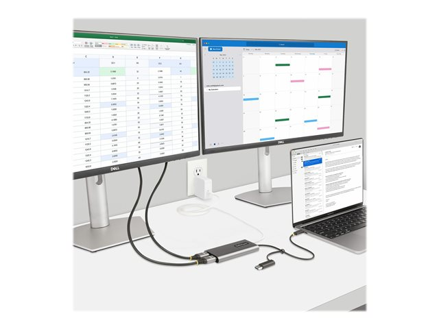 StarTech.com USB-C to Dual-HDMI Adapter, USB-C or A to 2x HDMI, 4K 60Hz, 100W PD Pass-Through, 1ft (30cm) Built-in Cable, External Video Graphics Adapter - USB to HDMI Multi-Monitor Converter for Laptop (109B-USBC-HDMI) - Videokort - TAA-kompatibel - USB typ A, USB-C hane till 2 x 19 pin HDMI Type A, USB-C hona - 30 cm - grå - stöd för 4K, aktiv 109B-USBC-HDMI