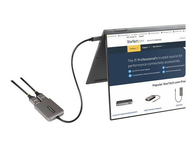 StarTech.com USB-C to Dual HDMI MST HUB, Dual HDMI 4K 60Hz, USB Type C Multi Monitor Adapter for Laptop w/ 1ft (30cm) cable, DP 1.4 Multi-Stream Transport Hub, USB Type C to 2x HDMI Ports - USB-C to HDMI Splitter (MST14CD122HD) - Videokort - USB-C hane till HDMI hona - grå