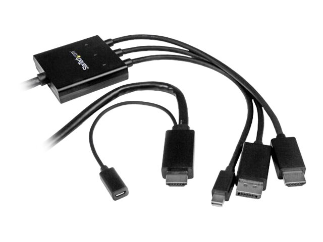 Startech 2m 6 ft HDMI, DisplayPort or Mini DisplayPort to HDMI Converter Cable - HDMI, DP or Mini DP to HDMI Adapter Cable (DPMDPHD2HD) - Videokort - HDMI, DisplayPort, Mini DisplayPort hane till HDMI, Mikro-USB typ B (endast ström) - 2 m - svart - stöd för 4K