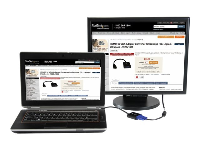 Med HD2VGAE2 HDMI till VGA-adapter kan du ansluta ett HDMI-uttag på en bärbar, stationär eller ultrabook-dator till en VGA-skärm eller -projektor och du slipper kostnaderna för att uppgradera till en HDMI-kompatibel skärm. HDMI-till-VGA-konverteraren är avsedd att leverera användargenererat innehåll som t.ex. presentationer eller dokument och kan även öka din produktivitet genom att utöka skrivbordet till en sekundär skärm och fördubbla arbetsutrymmet.