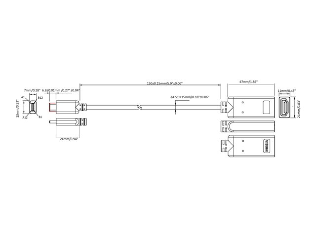 | Kontakt (andra änden) | 19-stifts HDMI typ A - hona |