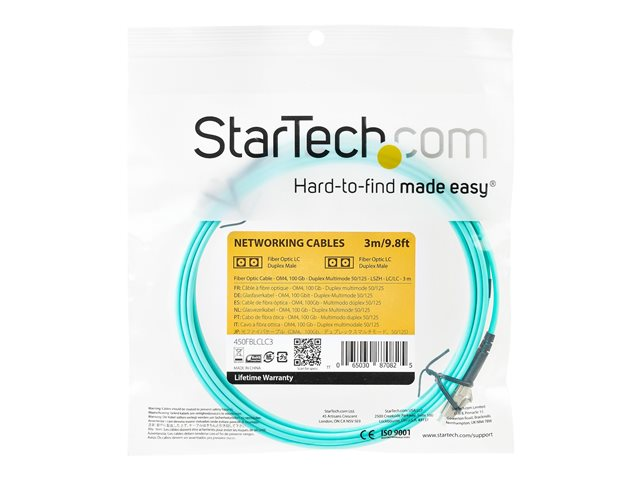 StarTech.com Aqua OM4 Duplex fiberoptisk kabel i multiläge - 100 Gb - 50/125 - LSZH - LC/LC - 3 m - Nätverkskabel - LC multiläge (hane) till LC multiläge (hane) - 3 m - 3 m - fiberoptisk - duplex - 50/125 mikron - OM4 - havsblå