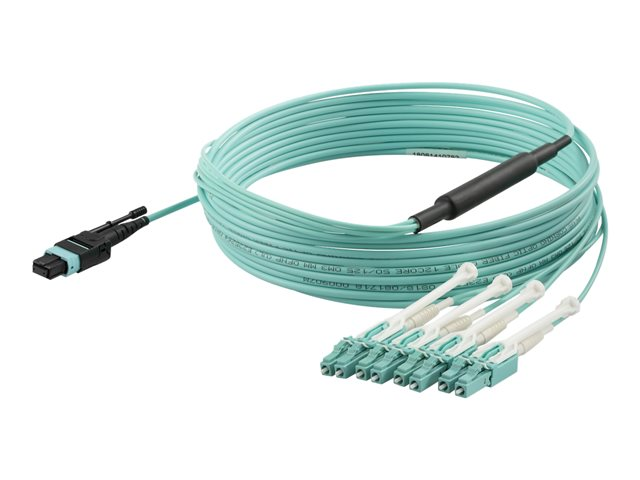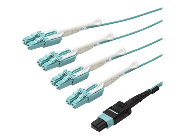 StarTech.com MTP to LC Breakout Cable - 15 ft / 5m - OM3 Multimode - 40Gb - Pull Tab - Plenum - MPO / MTP Connector - Fiber Optic Cable (MPO8LCPL5M) - Övergångskabel - MTP/MPO multi-mode (hona) tryck/dra till LC multiläge (hane) tryck/dra - 5 m - 5 m - fiberoptisk - 50/125 mikron - OM3 - plenum - havsblå MPO8LCPL5M