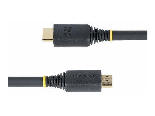 Den 15 m långa aktiva höghastighets-HDMI-kabeln från StarTech.com är utformad för att leverera prestanda vid anslutning av högupplösta enheter. Med sin skärmade teknik och aluminiummylarfolie med fläta säkerställer den här kabeln minimal signalstörning. Oavsett om du strömmar 4K-innehåll vid 60 Hz eller spelar vid 1080p med 240 Hz uppdateringsfrekvens, levererar den här kabeln videokvalitet. Med 12-bitars Deep Color och stöd för upp till 32 ljudkanaler får du en omslutande ljud- och bildupplevelse. Den hållbara designen inkluderar dragavlastning och en robust ytterdiameter på 9 mm, vilket säkerställer långvarig prestanda, med en livslängd på 10 000 infogningar och 2 000 böjningar. Längden på 15 m ger flexibla installationsalternativ för din heminstallation, vilket gör den till ett val för både professionell och privat användning.