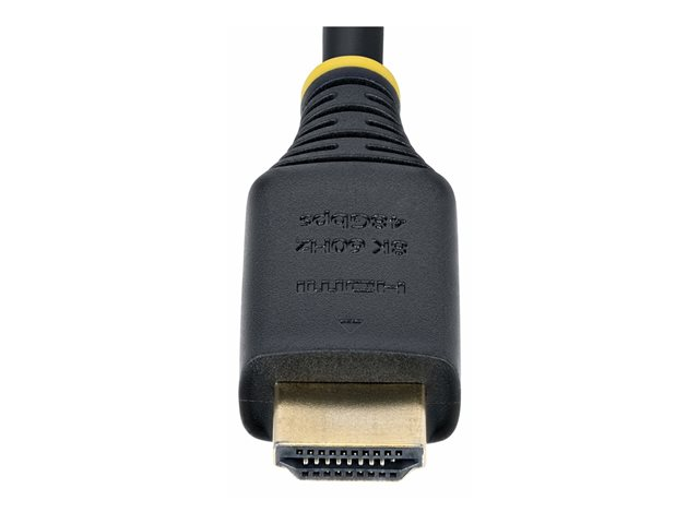 StarTech.com HDMI-kabeln ger prestanda för högupplösta multimediabehov. Denna kabel är utformad med 19-stifts HDMI-kontakter av typ A i båda ändar och stöder upplösningar upp till 8K vid 60 Hz, vilket ger bra bildkvalitet för din bärbara dator eller andra enheter. Skärmen, tillverkad av aluminiummylarfolie med flätning, säkerställer minimal störning samtidigt som den ger en hållbar lösning med ett flexibelt hölje tillverkat av termoplastisk elastomer (TPE).