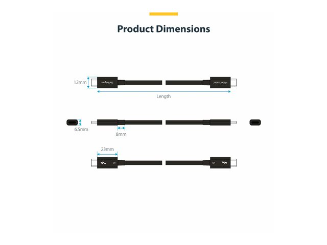 StarTech.com 1.5ft (50cm) Thunderbolt 5 Cable, 80Gbps/120Gbps, Certified - Thunderbolt-kabel - Thunderbolt 5 (hane) till Thunderbolt 5 (hane) - USB4 / Thunderbolt 3 / Thunderbolt 4 / Thunderbolt 5 / DisplayPort 2.1 - 50 cm - stöd för 4K, stöd för 8K, passiv, USB-strömförsörjning (240W) - svart