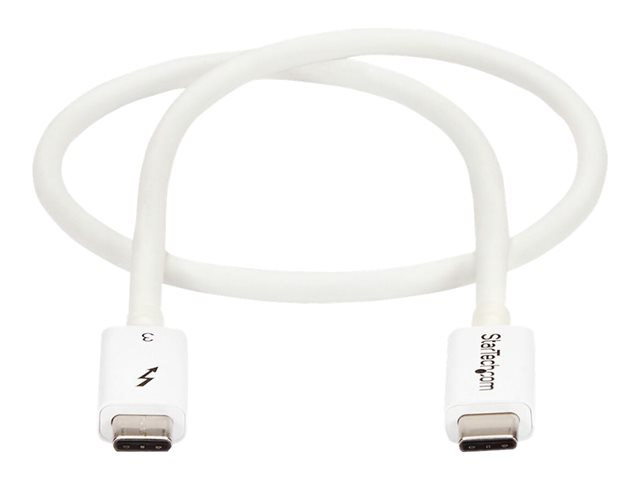 Med denna Thunderbolt 3-kabel kan du ansluta till vilken Thunderbolt 3-port (USB-C ) som helst för att ge video och data till dina Thunderbolt-, USB- och DisplayPort-enheter. Dessutom kan kabeln ge ström för att ladda dina enheter och du kan länka upp till sex Thunderbolt 3-enheter som en del av en kedjekopplad anslutning. Snabbare dataöverföring vid anslutning till Thunderbolt-enheter Denna kabel stöder dataöverföringshastigheter på 40 Gbps vid anslutning till en Thunderbolt 3-enhet så att du kan föra över foto- och videofiler fyra gånger snabbare än med en USB 3.1 Gen 2-kabel (10 Gbps). Du kan till exempel föra över en 4K-film på ett par sekunder. Vid anslutning till en USB 3.1-enhet stöder kabeln dataöverföringshastigheter på 10 Gbps. USB-C-kompatibel Thunderbolt 3 USB-C-kabeln är fullt kompatibel med alla dina USB 3.1 Gen 2-enheter och kan användas för laddning och synkronisering av dina mobila enheter. Du kan även ansluta och strömförsörja bärbara datorer med USB-C, till exempel din MacBook Pro, Chromebook och USB-C kringutrustning som exempelvis din bärbara enhet eller dockningsstation. Full 4K-video Kabeln stöder full 4K 60 Hz- eller 5K 60 Hz-video. Kabeln stöder också DisplayPort 1.2 och är kompatibel med befintliga DisplayPort-skärmar. Den är perfekt för att ansluta din dockningsstation eller bärbara dator till en skärm med enastående upplösning, kontrast och färgdjup för fantastiska detaljer. Mångsidig ström Denna Thunderbolt 3-kabel ger upp till 100 W för att ladda en bärbar dator eller för att strömförse en skärm och 15 W för bussdrivna enheter som till exempel ett hårddiskkabinett. Thunderbolt-nätverk Kabeln är ett enkelt sätt att ansluta flera Thunderbolt 3-kapabla bärbara datorer för peer-to-peer-nätverk på 10 GbE. Den är perfekt för att skapa mindre arbetsgrupper och dela tillägg som till exempel skrivare och lagring. Du kan dessutom ansluta två bärbara Thunderbolt 3-datorer för PC-migreringar. TBLT34MM50CW täcks av en 2-årsgaranti.