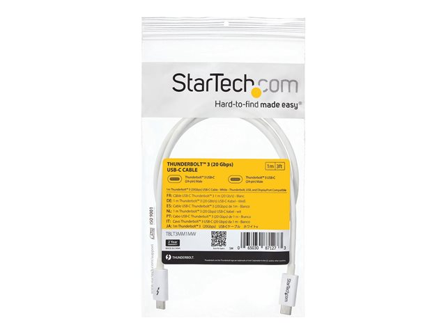 StarTech.com 3.3ft (1m) Thunderbolt 3 Cable, 20Gbps, 100W PD, 4K Video, Thunderbolt-Certified, Compatible w/ TB4/USB 3.2/DisplayPort - Thunderbolt-kabel - USB-C (hane) till USB-C (hane) - USB 3.1 Gen 2 / Thunderbolt 3 / DisplayPort 1.2 - 1 m - stöd för 4K - vit - för P/N: CDP2HDUACP, CDP2HDUACPW