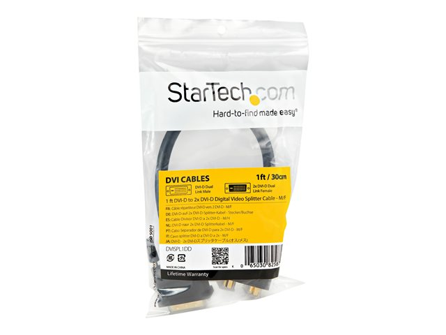 DVISPL1DD 30 cm DVI-D delarkabeln låter dig ansluta två DVI-D skärmar eller projektorer till en enda DVI-D digital video utdata-port på datorn.