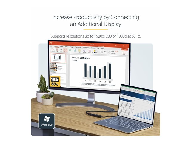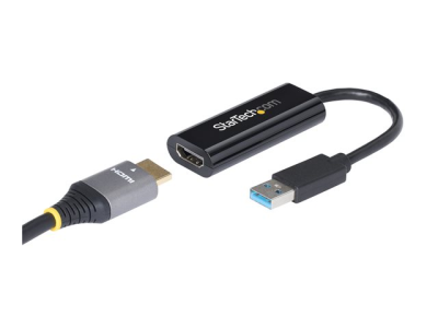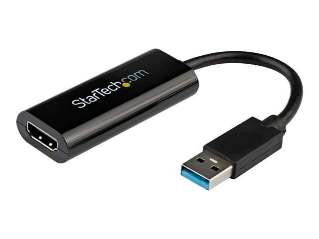 Startech USB 3.0 till HDMI-adapter - 1080p (1920x1200) - Tunn/kompakt USB Type-A till HDMI-skärmadapterkonverterare - Externt video- och grafikkort - Svart - Endast Windows - Adapterkabel - TAA-kompatibel - USB typ A hane till HDMI hona - 19 cm - svart - stöd för 1080p - för P/N: HDDVIMM3, HDMM12, HDMM15, HDMM1MP, HDMM2MP, HDMM3, HDMM3MP, HDMM50A, HDMM6, HDPMM50