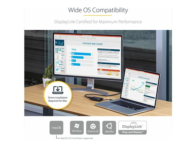 - DisplayLink 4K Plug-and-Display-certifierad - automatisk installation och uppdatering av drivrutiner