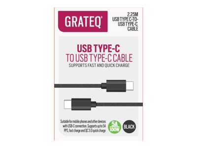 GRATEQ - USB-kabel - 24 pin USB-C (hane) till 24 pin USB-C (hane) - 5 A - 2.25 m - USB-strömförsörjning (100W) - svart