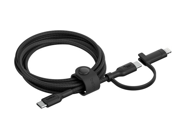 Belkin BoostCharge Pro 2-in-1 - USB-kabel - USB-C (hane) till Lightning, USB-C (hane) - USB 2.0 - 1.5 m - up to 480 Mbps, Snabbladdning upp till 60 W - svart