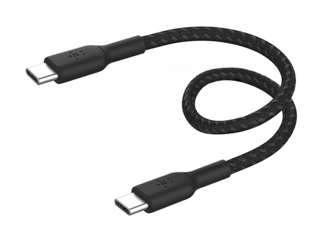 Belkin BoostCharge - USB-kabel - USB-C (hane) till USB-C (hane) - USB 2.0 - 20 V - 3 A - 15 cm - USB Power Delivery (60W), braided - svart