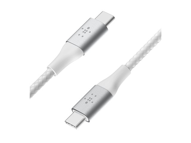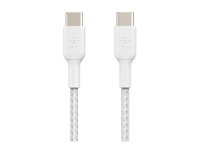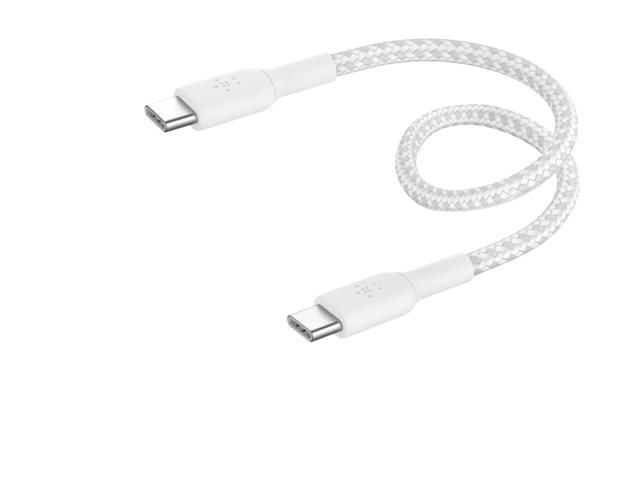 Belkin BoostCharge - USB-kabel - USB-C (hane) till USB-C (hane) - USB 2.0 - 20 V - 3 A - 15 cm - USB Power Delivery (60W), braided - vit