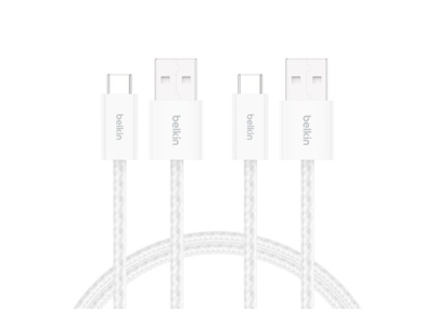 Belkin BoostCharge - USB-kabel - USB (hane) till USB-C (hane) - 1.5 m - braided, USB Fast Charge (15W) - vit (paket om 2)