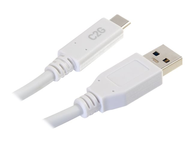 C2G 3ft USB C 3.0 to USB Cable - USB C to USB A - M/M - USB-kabel - USB typ A (hane) till USB-C (hane) - USB 3.1 - 30 V - 3 A - 91.4 cm - vit