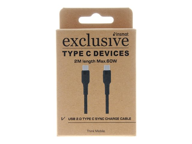 Insmat - USB-kabel - 24 pin USB-C (hane) till 24 pin USB-C (hane) - USB 2.0 - 3 A - 2 m - up to 480 Mbps, USB-C Power Delivery (60W) - svart