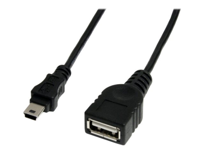 StarTech.com 1 ft Mini USB 2.0 Cable - USB A to Mini B F/M - USB cable - USB (F) to mini-USB Type B (M) - USB 2.0 - 1 ft - black - USBMUSBFM1 - USB-kabel - USB (hona) till mini-USB typ B (hane) - USB 2.0 - 30 cm - svart