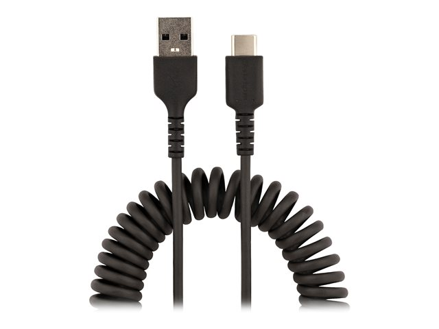 StarTech.com 1 m USB-A till C-laddningskabel, kraftig spiralkabel för snabb laddning och synkronisering, USB 2.0 A till USB Type-C-kabel av hög kvalitet, robust aramidfiber, slitstark hane till hane USB-kabel - USB-kabel - USB (hane) till USB-C (hane) - USB 2.0 - 3 A - 1 m - lindad - svart