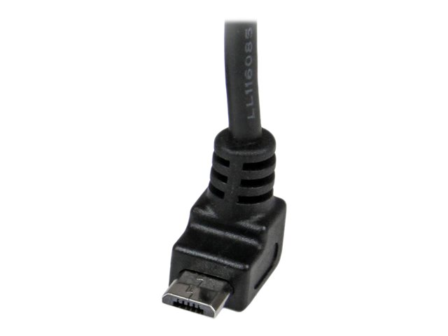StarTech.com 1m Micro USB Cable Cord - A to Up Angle Micro B - Up Angled Micro USB Cable - 1x USB A (M), 1x USB Micro B (M) - Black (USBAUB1MU) - USB-kabel - mikro-USB typ B (hane) till USB (hane) - USB 2.0 - 1 m - formpressad, 90° anslutning - svart