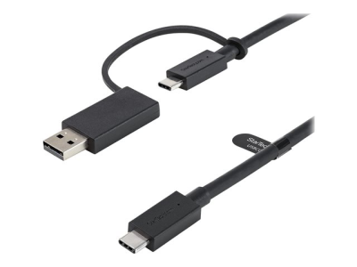 Denna hybrid 1-meters USB-C till C, USB 3.2 Gen 2 (10 Gbps) kabel med ansluten USB-A till C, USB 3.2 Gen 1 (5 Gbps) adapter gör att du kan ansluta en USB Type-C -enhet, som en dockningsstation, hårddisk, surfplatta eller mobila enheter till USB-C- eller USB-A-porten på din värddator. Kabeln är dessutom kompatibel med Thunderbolt 3-portar. Observera: När den används med en USB-A-värd fungerar denna kabel endast med dockningsstationer som stöder DisplayLink. Ladda dina USB Type-C-enheter snabbare När den används med en PD 3.0-kompatibel USB-C-strömkälla stöder denna 1 meter långa USB-C till C-kabel upp till 100 W (5 A) strömsättning för att ladda en USB-C- eller Thunderbolt 3-utrustad bärbar dator, surfplatta eller smartphone. Den anslutna USB-C till USB-A-adaptern stöder också när den är kopplad till USB-C till C-kabeln upp till 15 W (5 V, 3 A) strömsättning för att ladda dina enheter från en USB-A väggladdare, billaddare eller powerbank - perfekt för alla på resande fot, för att tillhandahålla enkla, prydliga anslutningar. Anslut dina USB 3.1-tillbehör USB 3.2 Gen 2, USB-C till C-kabeln erbjuder 10 Gbps datahastighet, vilket gör att du kan synkronisera dina USB Type-C-enheter på nolltid. Du kan även ansluta din USB 3-kringutrustning (3.0, 3.1 eller 3.2) som hårddiskkabinett och dockningsstationer, till din bärbara USB-C- eller TB3-dator. USB 3.2 Gen 1, USB-C till A-adaptern, när den används med USB-C till C-kabeln, erbjuder 5 Gbps datahastighet. Du kan använda mindre tid åt att överföra och säkerhetskopiera dina data från dina USB-C-enheter till din USB-A-värd och fokusera mer på dina projekt och presentationer. Kabel för hybriddockningsstation Använd denna kabel med din hybrid USB-C-dockningsstation eller USB-C-hubb för att ansluta din bärbara dator, surfplatta, smartphone eller bärbara hårddiskar. Denna kabel levereras också som tillbehör till StarTech.coms hybriddockningsstationer för dubbla skärmar (4K 60Hz) som DK30C2DPEP och DK30C2DPPD. USBCCADP täcks av StarTech.coms 2-årsgaranti för garanterad tillförlitlighet.