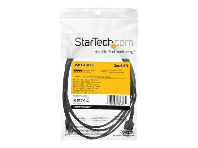 StarTech.com 2 m USB 2.0 till USB-C-kabel - svart  - USB-kabel - USB (hane) rak till USB-C (hane) rak - Thunderbolt 3 / USB 2.0 - 2 m - svart - för P/N: CDP2HDUACP2, SECTBLTDT, STNDTBLTMOB RUSB2AC2MB