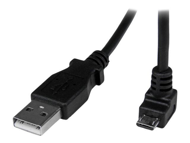 StarTech.com 2m Micro USB Cable Cord - A to Down Angle Micro B - Down Angled Micro USB Cable - 1x USB A (M), 1x USB Micro B (M) - Black (USBAUB2MD) - USB-kabel - mikro-USB typ B (hane) till USB (hane) - USB 2.0 - 2 m - formpressad, 90° anslutning - svart