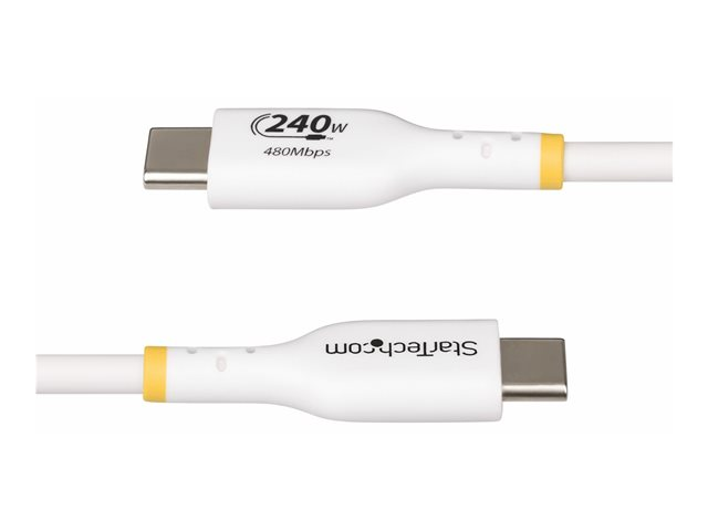 StarTech.com 2m USB C Charging Cable är en USB-IF-certifierad kabel som är utformad för att uppfylla behoven hos enheter med hög efterfrågan. Med stöd för USB Power Delivery (240 W) och Power Delivery 3.1 erbjuder den snabbladdningsfunktioner för enheter som kräver mycket ström. Kabeln är konstruerad för hållbarhet, har en livslängd på 10 000 instick och är tillverkad med högkvalitativa kopparledare och ett hölje av termoplastisk elastomer. Den stöder en datahastighet på 480 Mbps, vilket möjliggör snabb synkronisering och filöverföring. Dessutom är kabeln utrustad med EMI-skydd och ett e-markörchip, vilket garanterar en säker och störningsfri anslutning. Den miljövänliga, halogenfria designen gör den till ett perfekt val för miljömedvetna användare. Oavsett om det gäller professionell användning eller personlig bekvämlighet, ger denna USB-C-kabel en pålitlig, effektiv och hållbar lösning för laddning och dataöverföring.