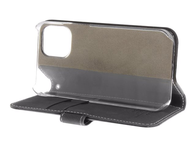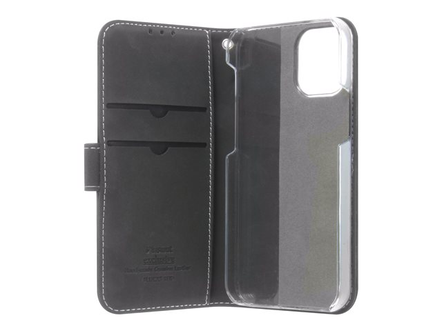Insmat Exclusive Flip Case - Vikbart fodral för mobiltelefon - genuint läder, papper, kartong, polykarbonat, aluminiumfolie - svart - för Apple iPhone 12 mini