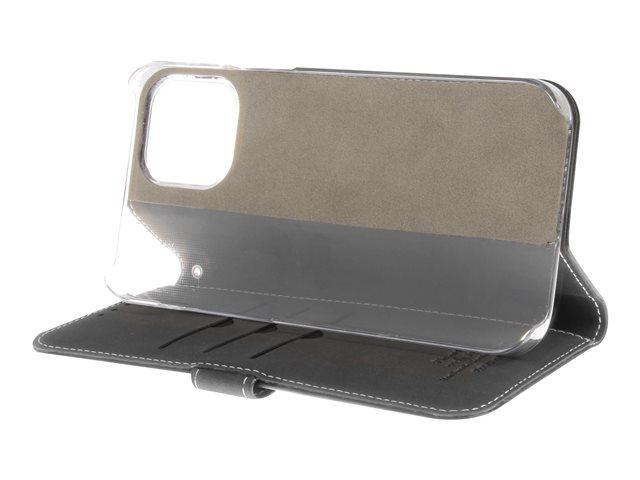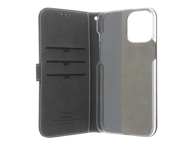 Insmat Exclusive Flip Case - Vikbart fodral för mobiltelefon - papper, kartong, läder, polykarbonat, bomull, aluminiumfolie - svart - för Apple iPhone 12 Pro Max 650-2880