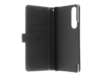 Insmat Exclusive - Vikbart fodral för mobiltelefon - läder, kartong+papper, aluminiumfolie - svart - för Sony XPERIA 1 V