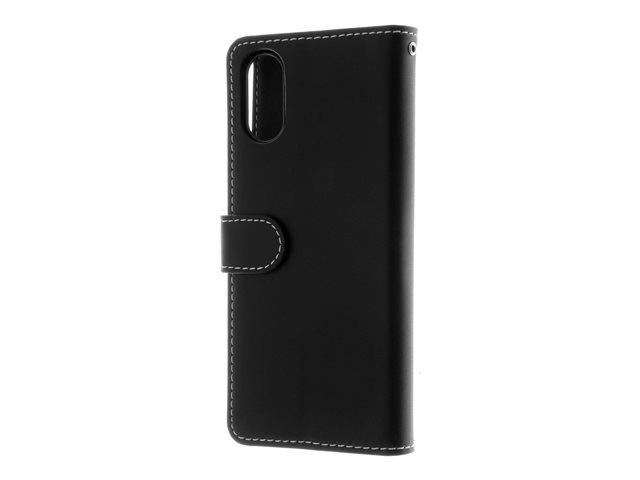 Insmat Exclusive - Vikbart fodral för mobiltelefon - genuint läder, termoplastisk polyuretan (TPU), kartong+papper+aluminiumfolie - svart - för Sony XPERIA 5 V