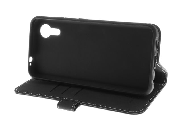Insmat Exclusive - Vikbart fodral för mobiltelefon - genuint läder, kartong+papper, polyuretan, termoplastisk polyuretan (TPU) - svart - för Samsung Galaxy XCover7