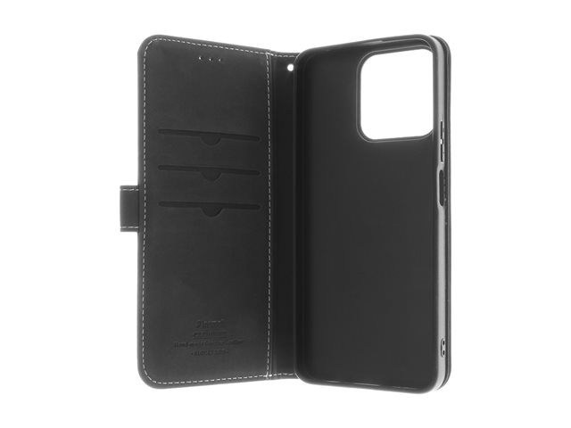 Insmat - Vikbart fodral för mobiltelefon - genuint läder, kartong+papper+aluminiumfolie, polykarbonat (PC), bomullssömmar - svart - för Honor 200 Smart