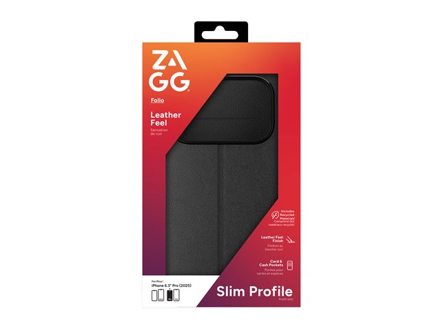 Zagg - Vikbart fodral för mobiltelefon - folio - läder - svart - för Apple iPhone 17 Pro