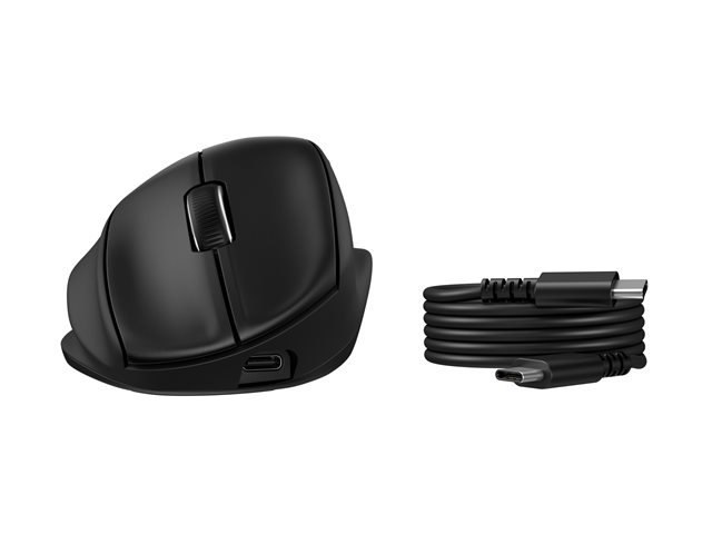 HP 725M - Mus - ergonomisk - 21° semi-vertical tilt - högerhänt - 7 knappar - trådlös - Bluetooth, 2.4 GHz - trådlös USB-mottagare - svart