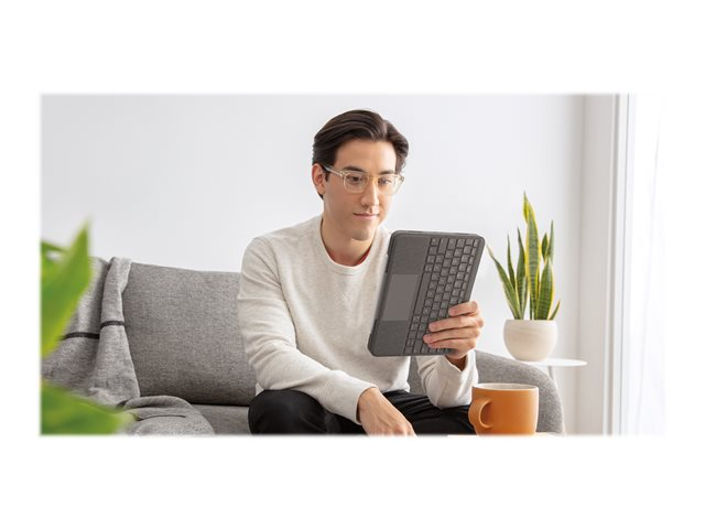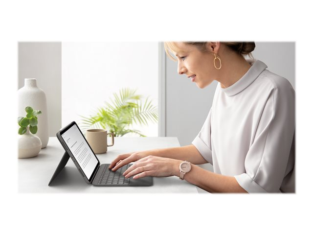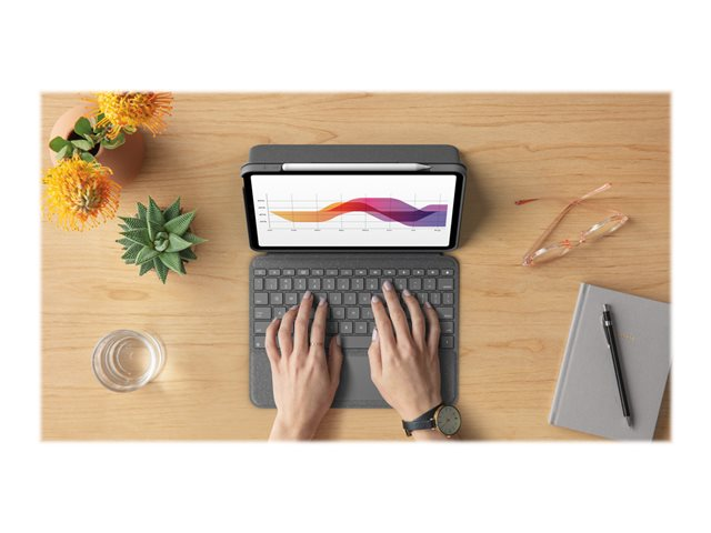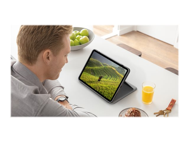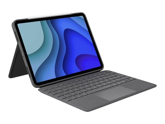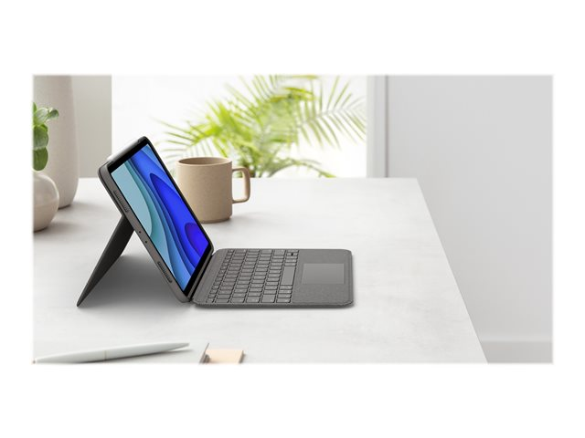 Logitech Folio Touch - Tangentbord och foliefodral - med pekdyna - bakgrundsbelyst - Apple Smart connector - QWERTY - brittisk - oxford-grå - för Apple 10.9-inch iPad Air (4:e generation, 5:e generation)