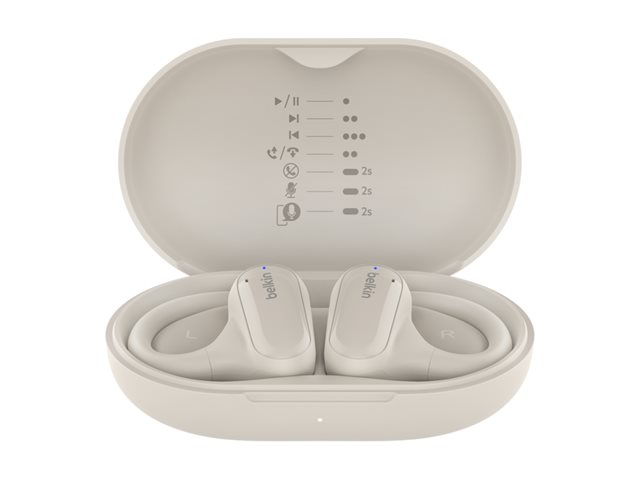 Belkin SoundForm ClearFit - True wireless-hörlurar med mikrofon - öppet öra - montering över örat - Bluetooth - sand