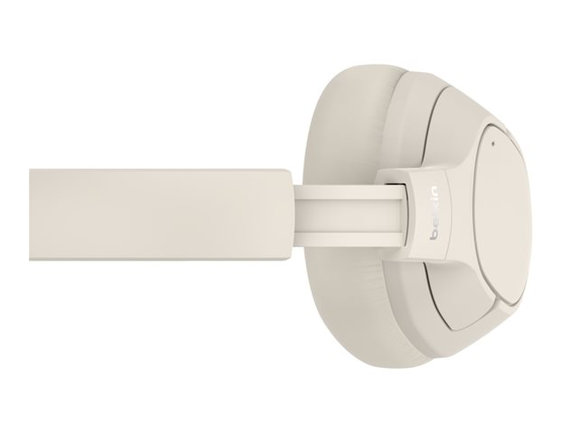 Belkin SoundForm Isolate - Hörlurar med mikrofon - fullstorlek - Bluetooth - trådlös, kabelansluten - aktiv brusradering - USB-C, 3,5 mm kontakt - ljudisolerande - sand