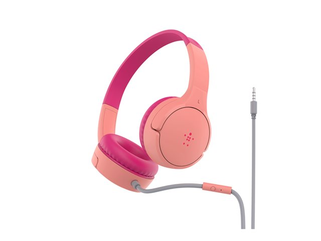 Belkin SoundForm Mini - Hörlurar med mikrofon - på örat - kabelansluten - 3,5 mm kontakt - rosa