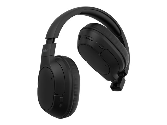 Belkin SoundForm Surround - Hörlurar med mikrofon - fullstorlek - Bluetooth - trådlös, kabelansluten - USB-C, 3,5 mm kontakt - svart