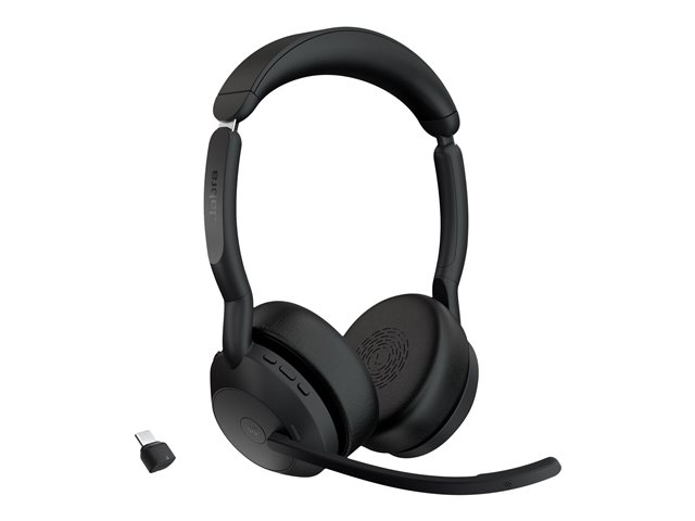 Jabra Evolve2 55 MS Stereo - Headset - på örat - Bluetooth - trådlös - aktiv brusradering - USB-C - svart - Zoomcertifierad, Cisco Webex Certified, Alcatel-Lucent-certifierad, Avaya-certifierad, Unify-certifierad, MFi-certifierad, Google Meet-certifierad, Amazon Chime-certifierad